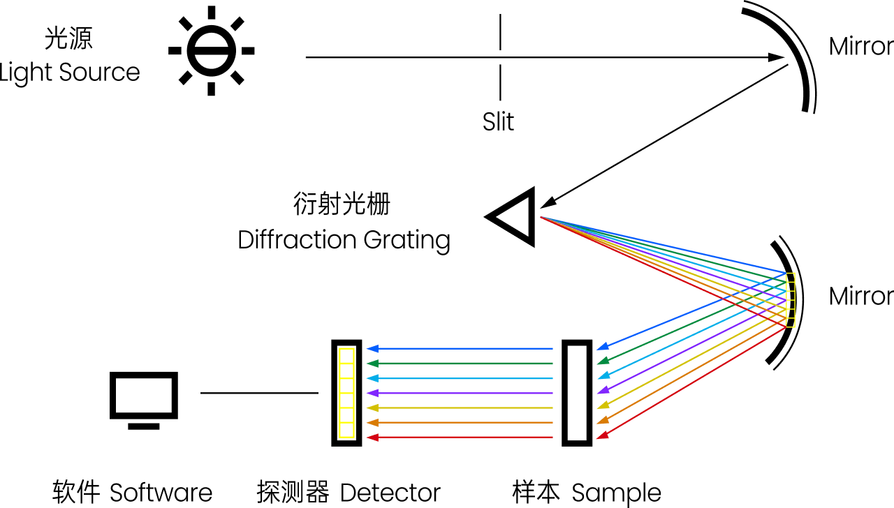 相比传统光谱仪,NT2000系列光谱传感芯片能够减少精密光谱元件的使用数量,简化光路设计,但依旧能够实现准确的物质光谱数据采集。